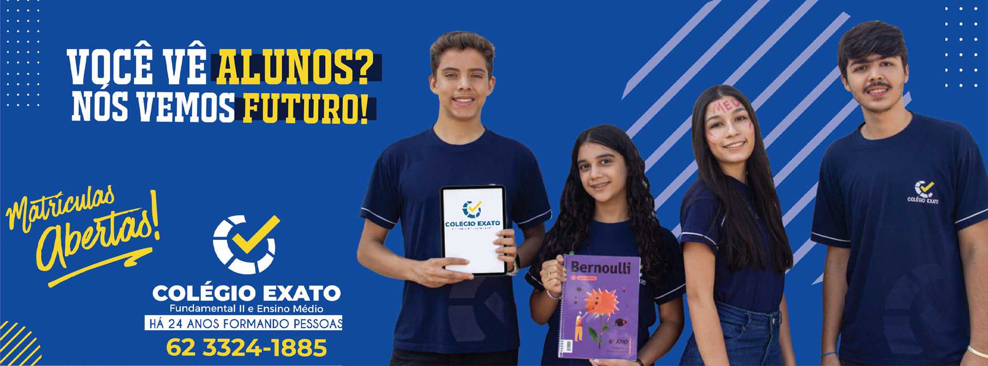Colégio Exato prioriza um ensino responsável, de qualidade, enfatizando o desenvolvimento criativo do aluno e a junção de suas experiências na coesão de seu EU autônomo com o mundo e na manifestação do pensamento afetivo e solidário na sua amplitude.